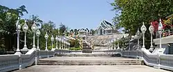- 🌍 Tiger Cave Temple (Wat Tham Sua) (take the road to the airport and turn left/north before you get to the big shopping malls; you should be able to see a big Buddha on the mountaintop; it should cost no more than 200 baht by taxi). One of the most famous temples in southern Thailand, built into a mountainside about 3 km north-northeast of Krabi Town, and swathed by tropical forest.The first thing you see as you walk into the temple compound is a huge stupa on the right (closed for reconstruction in late 2016), but this isn't the Tiger Temple. The temple is set into the base of the karst cliff which rises sheer from the forested plain: follow the ramp into the hall. Buddhas line the cliff overhang, then a few narrow steps lead into the cave shrine itself. The temple was only founded in 1975, yet already there are several contradictory explanations of how the tiger was involved.If you have at least an hour and feel fit, the first stairway beyond the temple has 1,237 steps to the top of the mountain, where there are great all-round views, and another large Buddha shrine. (This too is sometimes mistaken for the "Tiger Temple".)Otherwise, continue through the monks' village to the second stairway, which offers an easier climb into a scenic valley (called "Wonderland") with several smaller cave shrines.Signs warn you against feeding the monkeys, right next to signs advertising monkey food. Follow the warnings, not the adverts: the monkeys are cute from a distance but utter pests close-up, and if they bite you (often without provocation) then you need rabies vaccine immediately.
