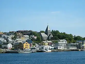 Kristiansund is a city and municipality on the mid-western coast of Norway, in Møre og Romsdal county. It has among the most special and interesting architecture of Norway, which originates from the aftermath of World War II, when nearly 80% of the city was demolished by bombs. It sits on five islands slightly off the shore of mainland Norway. The natural harbour formed by the islands is considered to be unique and particularly beautiful, protecting the city centre from winds and weather outside in the Atlantic Ocean. The city is sometimes called Kristiansund N, where N stands for North, to distinguish it from Kristiansand in southern Norway, a name introduced by the postal service.