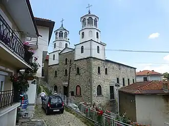 - 🌍 Church of the Assumption (Црква „Успение на Пресвета Богородица“) (Mijak Quarter). This church was built of stone in 1867 and its frescoes were done in 1870. It suffered some damage during the Ilinden Uprising but was repaired. The roof slopes downward from the middle, where there is a dome. It also has an attached black bell tower which, along with the dome, makes up a defining feature of the town skyline.