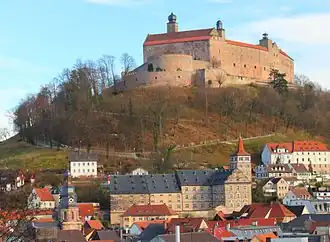 - đ Plassenburg. April - October: Monday-Friday 09.00 to 18.00, Saturday 10.00 to 13.00, November - March: Monday-Friday 10.00 to 17.00. The castle towering over the town. Its Pewter Figurine Museum (Zinnfigurenmuseum) holds over 300,000 pewter figures, most of which are displayed in over 220 dioramas. Special exhibitions are also frequently shown in the museums and open-air concerts are held regularly in the Schönen Hof.