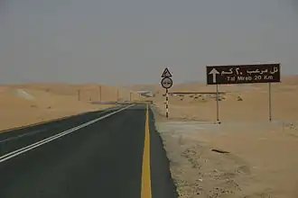 At the eastern end of the oasis region, a new road connects straight back to the E11 motorway close to Abu Dhabi. Though it is wide and well maintained, at only two lanes speed limits are set to 80 km/h, vs. 120 km/h on the main road.