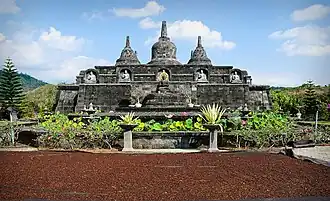 - π Brahma Vihara Arama, Dencarik, β +62 816-4733-609. Bali's largest Buddhist monastery is near the village of Dencarik. The monastery is absolutely charming and commands lovely views. Whilst obviously Buddhist with its orange roof, numerous gold Buddhas and stupas recalling those at Borobudur, the carvings and ornamentation are very Balinese. The combination works well and if it were in a location easier to reach, it would receive far more visitors than it does. A visit here combines well with Banjar Hot Springs. Donation.