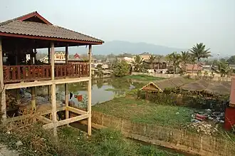 - Tai Dam Guesthouse (from Green discovery, head south on the main street and take a right at the sign "Tai Dam". Keep going straight; the paved road will make a right turn; at this point continue forward on the (muddy) unpaved road.). This place offers bungalows with that overlook fishing areas, with the hillsides as the surrounding backdrop. The bungalows are designed and decorated in Tai Dam-style. You can also stay in the main building. Attached bathrooms with hot shower and a TV with access to Lao and Thai stations. From 40,000 kip low-season.