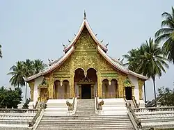 - 🌍 Royal Palace National Museum (ຫໍຄຳ Haw Kham). 08:00-11:30 and 13:30-16:00. The former royal palace, now a national museum. It is not a national history museum however. You pass through the state rooms and the private rooms of the royal family and can see the collection of official cars. No photos, videos, bags, or shoes allowed, free locker provided. No bare shoulders, midriffs or knees; you can rent a cloth for 5,000 kip at the locker room if needed. Also on the grounds of the palace is the former royal temple. 30,000 kip.