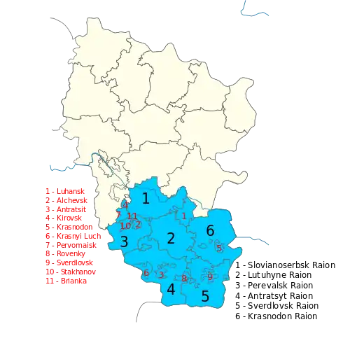 The LPR extended to approximately half of Luhansk Oblast of Ukraine, including its densely populated areas, the regional capital Luhansk, and the major cities Alchevsk and Krasnodon.