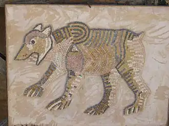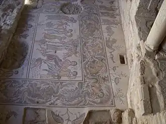 - π Umm ar-Rasas (from the highway south take the road east at Dhiban, 30 km southeast of Madaba). A UNESCO World Heritage Site which contains ruins from the Roman, Byzantine, and early Muslim civilizations. The majority of the site has not been excavated. The most important discovery on the site was the mosaic floor of the Church of St Stephen. It was made in 785 (discovered after 1986). The perfectly preserved mosaic floor is the largest one in Jordan. On the central panel hunting and fishing scenes are depicted while another panel illustrates the most important cities of the region (including Kastron Mefaa, Philadelphia, Madaba, Esbounta, Belemounta, Areopolis, Charac Moaba, Jerusalem, Nablus, Caesarea and Gaza).