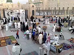 The streets leading to and around the Prophet's Mosque are lined with shops selling goods of every variety. Visitors to Medina usually buy prayer rugs (some with magnets pointing towards the Kaaba), caps, Tasveeh or rosary beads, Abayas, pictures of the holy city and mosques, religious CDs, copies of the Holy Quran, clocks sounding Azan or the call to prayer (correct to the second) for nearly 5 million cities, etc. as souvenirs to take back with them or as gifts for family and friends. The best of them to take back are dates from Medina.