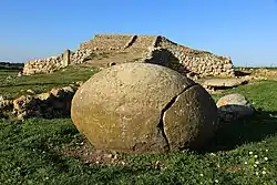 Menhirs are large, upright stones that usually stand without any other structure or connection to other stones. They can be found alone or in groups and are often associated with ritual practices. The term ‘menhir’ is humorously popularised by the comic character Obelix from the Asterix series, as he always carries such a stone with him. Menhirs can be found in large numbers in France in the Bretagne region.