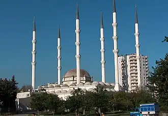 - 🌍 Muğdat Mosque, 1314th Sk 3. Huge mosque (capacity 5500) built in the 1980s in traditional style with four minarets, and two more were added in the 2010s. It's named for Miqdad ibn Aswad, a warrior companion of the Prophet Mohamed who grew to be similarly huge.