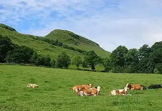 - Campsie Fells are a few miles north, surrounding Fintry. Their highest point is the Earl's Seat at 578 m (1896 ft). "Campsie" is from the Gaelic for "crooked fairy", but it's best not to dwell on this.