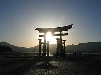 - 🌍 Itsukushima Shrine (厳島神社), 1-1 Miyajima-Cho, ☏ +81 829-44-2020, fax: +81 829-44-0517. Mar-Oct: 06:30-18:00, Nov: 06:30-17:30, Dec: 06:30-17:00, Jan-Feb: 06:30-17:30. A UNESCO World Heritage Site, Itsukushima is a large, red-lacquered complex of halls and pathways on stilts. It was built this way so that commoners could visit without defiling the island with their footprints. Weddings are occasionally held at the shrine, but that doesn't bar visitors, and the priest's ceremonial dance is a memorable sight. ¥300 for temple entry, ¥500 for entry plus Treasure Hall.
