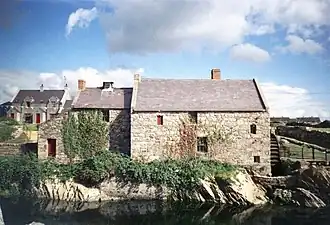 - π Annalong has a 19th century corn mill. A lane leads inland to Silent Valley.