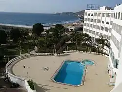 • 🌍 Ramada Al Mukalla. One of the best hotels in the area. It is not in the city centre but is a few kilometres away. It has a private beach, swimming pool and intermittent internet. All rooms have a sea view. It used to be a Holiday Inn, but has changed to the Ramada brand. Be careful on the beach as it is rocky with sharp objects/sea urchins at low tide.
