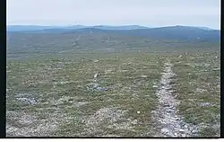 You could also follow the path from the village until it turns from south-west to south on Muoidunaláš/Muáđumaalaaš, then turn to north-west to get round the fell and climb it from the west and return by the other path. That way you don't miss the view to the fell's impressive southern slope and get a little feel for the larger wilderness area.