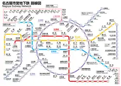 - The red Sakuradōri Line (桜通線, S) curves southwest from Nagoya Station.