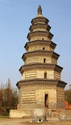 🌍Fusheng Temple Pagoda(福胜寺塔 Fúshèngsì Tǎ),Intersection of Gucheng Road and Tuanjie West Road, Dengzhou (邓州市古城路与团结西路交汇处)(take a long-distance bus to Dengzhou (a 90-minute journey), then take a no. 16 bus and get off at the Gucheng Road Intersection),☏ +86 377 62287596.08:00-17:00.Founded in the Northern Song Dynasty, the pagoda was built with 13 levels and stood more than 66 meters high. But during the late Yuan Dynasty, the upper 6 levels were destroyed during a battle. The temple that the pagoda once belonged to also no longer exists, though the government reportedly plans to rebuilt it. During the restoration of the pagoda in 1988, many valuable Buddhist artefacts were discovered in an underground basement. These artefacts are on display at the Henan Provincial Museum in Zhengzhou.Access is free but visitors are not allowed inside the pagoda.(updated Jun 2024)