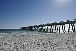 Navarre is famous for its sugar white sand beach and emerald green water. There are over a dozen public beaches with parking boardwalks across the dunes. There are also three beach access areas, with bathrooms, parking, and pavilions for picnics and events, in the Navarre Beach Marine Park (see above section), which is located immediately to your left after crossing the Navarre Beach Causeway.