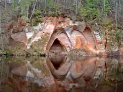 - Salaca River — With mostly fast stream, multiple sandstone cliffs and caves, suitable for several days long boat trips. A popular destination of local tourism is Mazsalaca. For water tourists Salaca River is always an adventure - peaceful and scenic sections interchanging with impressive canyons including the locally famous echo cliff Skaņaiskalns. Museum in Valtenberģu manor with expositions as Genealogy tree room, 31 Walter Hirt tree sculpture collection hunting trophies, play mouse collection. The longest natural caves of Latvia, the 300-m-long Dauģēni or X caves are located at Salaca.