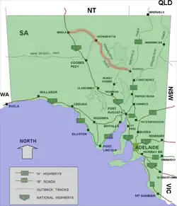 The track is essentially a diversion from the Stuart Highway from Port Augusta to Alice Springs. It largely follows the route of the old Ghan railway. The Ghan itself now largely follows the route of the Stuart Highway.