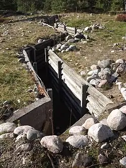 Old defence structures, such as trenches and foxholes, are sometimes well hidden. Watch your step.