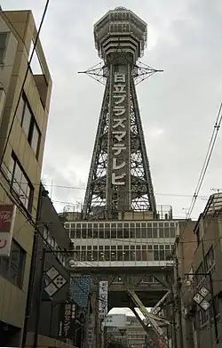 - The Tsūtenkaku landmark tower in the Shinsekai area with an observation platform at 91 meters.