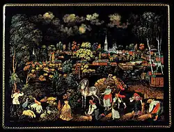 - Palekh miniatures — In the 20th century the town distinguished itself by the innovation of distinctive lacquer painted miniatures, famous across Russia.