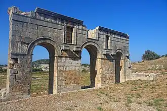 - - Mettius Modestus Triumphal Arch or City Gate is a triple arch on the lane 200 m south of the chapel. It was built around 100 BC and named for Lycia's Roman governor. Foundations of city walls, a watchtower, an aqueduct and fountains lie alongside.