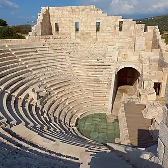 - - Kursunlutepe the hill south of the amphitheatre has an ancient cistern near its crest and a temple tomb 100 m west.
