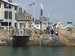 - π The Royal William Yard. Once the place from which the British Navy was provisioned. The naval presence in Plymouth is immense: the city is home to the largest naval base in western Europe, which is open to the public on Naval Days. It's in Stonehouse, an area of Plymouth west of the Hoe. In Summer, you can get a boat there from the Barbican, or walk or get a bus. Now a bustling public space with up-market numerous cafΓ©s, bakeries and galleries, as well as private apartments. Also known as a filming location for ITV's Hornblower. Located right next to the Devil's Point park, with views over to Cornwall. Admission free.