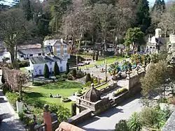 The village was constructed by architect Sir Clough Williams-Ellis on his own private peninsula from 1925 to 1975 and is now run by a charitable trust with the aim of preserving his work, which is quite a task since he constructed a lot of it on the cheap as a personal project and out of his own pocket. It is not a residential village, it runs as a tourist attraction, welcoming day guests (admission is £7.50) and hotel residents, using the village's many cottages as the hotel accommodation.