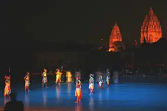 - 🌍 Ramayana Ballet Prambanan. An open-air theatre inside the park, just west of Candi Prambanan right across the Opak river, has ballet Javanese dance performances of the great Hindu epic Ramayana on four nights during each full moon between May and October (dry season). The performance involves around 200 artists; dancers and gamelan musicians for about 2 hours, and is performed on Tuesday, Thursday and Saturday nights. This performance, set against the starry sky and the lit backdrop of Prambanan with new LED lighting, is quite spell-binding. Enquire at travel agents locally or at your hotel for tickets and times. During the rainy season (November to April) the performance is held in the smaller indoor Trimurti theatre. The ticket price in 2015 wass between Rp 100,000 to Rp 350,000.