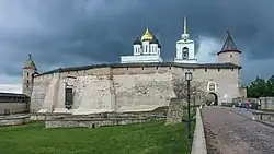 - 🌍 Pskov Krom (Pskov Kremlin). A citadel dating back to the Middle Ages. The site includes the so-called Dovmont's city, impressive remains of the 13th-century Pskov excavated and turned into a sort of an open-air museum.