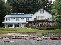 - 🌍 Heriot Bay Inn, 673 Hotel Rd, Heriot Bay, ☏ +1 250 285-3322, toll-free: +1-888-605-4545 (North America only). Hotel on the harbour. The building has long roots in the community, with the first building dating to 1895. The current building was built in 1912 as a hotel and has been renovated several times since. There are 10 rooms in the inn — a bit on the smallish side, but they are cozy and nicely furnished — as well as three cabins (one 1BR and two 2BR) with full kitchens, a BBQ and patio. The grounds also include a campground with over 40 spots for RVs and tents. Facilities include showers and a laundromat, and some sites have hookups. The hotel will also organize wildlife viewing, fishing and kayak tours, and kayak rentals. There's a pub and restaurant on site. High season (Jun-Sep): $109-129 (hotel rooms), $249-289 (cabins), $25-37 (campground); cheaper rates at other times.