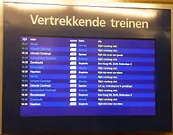The regular intercity connections are most likely the ones you would use the most. They connect the major cities with one another, skipping the smaller towns along the route. Utrecht is what comes closest to the central hub, due to its location in the center of the country. Only routes served by NS dedicated to domestic rail travel are counted as Intercity lines here, even though Arriva does offer connections that can be defined as Intercity, they refer to them as Sneltrein (fast train). Routes below are listed by their serial number. Do not bother remembering the serial numbers, as these cannot be found at the station or in trains.