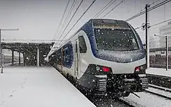 NS employs Stadler FLIRT trains for sprinter services as well. These were taken into service following a shortage of rolling stock that formed between the completion of the order for SLT trains, and the start of production of the SNG. This train features charging outlets in first and second class, and is decorated throughout with De Stijl and Mondrian-inspired elements. NS FLIRTs are mostly found in service in Noord-Brabant and Gelderland.