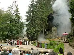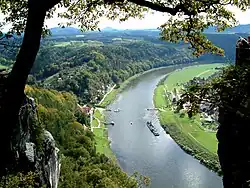 Rathen is a spa town in Saxon Switzerland, Germany. It is close to the Bastei, the most famous rock formation and spectacular viewpoint in the Elbe Sandstone Mountains. Rathen is a popular tourist destination, the main sights are the Bastei cliffs, the Amselsee (a lake), and the outdoor theatre, "Felsenbühne Rathen".