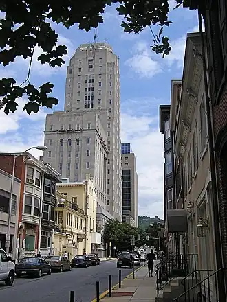 Several attractions can be seen atop Mount Penn, overlooking the city. The fire tower, which has been restored, and the trademark Pagoda, which also houses various artwork. The Pagoda was originally intended to be a luxury hotel. Unfortunately, when the application for a license to serve alcohol was denied the luxury inn never materialized and the building went into the hands of a local bank.