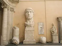 - π Museo Capitolino (Capitoline Museum). Built in the 17th century to a design based on an architectural sketch by Michelangelo. Highlights include the ancient Colossus of Constantine statue (the Colosseum was probably named for another giant statue, the Colossus of Nero which stood near the Flavian Amphitheatre as the Colosseum was originally known), The Dying Gaul, a magnificent marble sculpture that copies a bronze Greek original of the 3rd century BC and the Capitoline Venus. It also contains the remarkable original gilt bronze equestrian statue of emperor Marcus Aurelius (the one in the piazza is a replica).