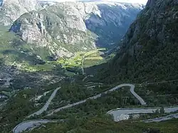 Lysevegen from Lysebotn in the bottom of lysefjorden in east up to Øygardstøl count 27 exciting hairpin bends, open in summer.
