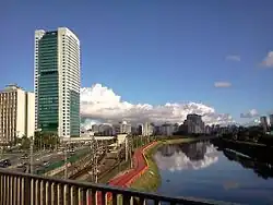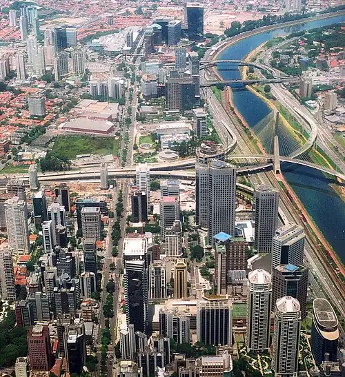 - 🌍 Brooklin Novo, Itaim Bibi (station Berrini, next to station Morumbi). Perhaps the most impressive business center of the city, Brooklin Novo is between Av. Eng. Luiz Carlos Berrini and the Pinheiros river. From here you can also see one of São Paulo's most famous landmarks, the bridge Ponte Octavio Frias de Oliveira, more known by locals as Ponte Estaiada (tip: the best view of the bridge is from Ponte do Morumbi). Not many restaurants in the streets, but you can eat at Shopping Nações Unidas (more like a food court than a shopping mall) or at the furniture shopping center D&D.