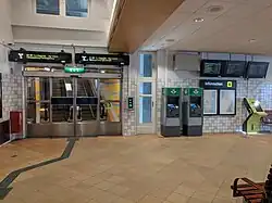 Several convenience stores, cafés and dining options are available. There is staffed ticket sales and vending machines available, but tickets sold are only valid in the SL network.