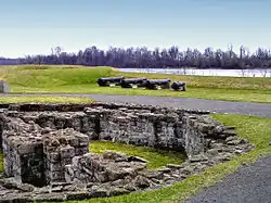 During this period of military activities, the British government had the site of Grande-Île fortified. Thus, in 1813, the construction of a redoubt was carried out under the colonel of the militia and lord of Vaudreuil, Michel Eustache Gaspard Alain Chartier de Lotbinière, at Pointe-aux-Anglais. The infrastructure built in the form of a landing stage consisted of a chain passing from edge to edge of the bay in order to close the entrance. In fact, the most notable contribution of Colonel de Lotbinière, was to build a road across the width of the island so as to quickly reach Coteau-du-Lac on the north shore of the river. This road became Boulevard Grande-Île.