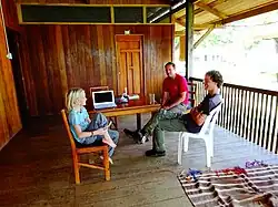 Sit on the wonderful wooden terrace of the community hotel and watch the colourful birds in the tree tops just some metres away.