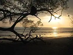 Beach access is not well marked, not well-lit, and rugged, but there are entry points at 9.6304589,-85.1541772 and 9.6429847,-85.167605 and 9.6455663,-85.1709777.