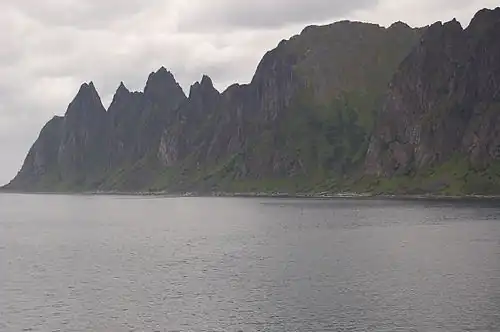 The more picturesque villages, though, are found on the western side. Fjordgård (Fjord farm) is the starting point to famous Segla and Hesten mountains and offers views to Husøy. Husøy (House island) is flat island surrounded by dramatic mountains. Mefjordvær has a picturesque lighthouse and some old buildings, again with fabulous landscapes around. Gryllefjord is the biggest village on the west side, with a more modern feel. Torsken is an ancient centre with an 18th c. church.