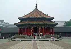 - 🌍 Mukden Palace (故宫 Gugong), Shenyang Rd, Shenhe District (Bus 222 or 213 can take you there for ¥1), ☏ +86 24 24843001. Former Imperial Palace - built in 1625 for Nurhachi, and inherited by his son Abahai (Huang Taiji), the Former Imperial Palace of Shenyang is one of two royal complexes extent in China today. The splendid and distinctly ethnic Manchu architectural style of the palace, which includes Dazheng (Grand Politics) Hall, the Ten Princes' Pavilion, Chongzhen (Golden Chimes), Phoenix Chamber and Qingning (Pure Tranquility) Pavilion, are still in perfect shape. On Saturday afternoons during the summer, the palace is the venue for a grand Imperial procession. This is listed as a UNESCO World Heritage Site alongside the palace in Beijing. It is also an AAAA-rated tourist site on the Chinese national scale. A guidebook is available in English at the ticket office, priced ¥25, which provides a detailed explanation of the exhibits. This fascinating palace contains finer details compared to the one in Beijing, such as the exquisitely handcrafted detailed carving and painting, which are still clear after four centuries. The throne room in Chongzheng Hall has incredibly detailed scrollwork -even the columns circled by the watchful dragons and on the throne. The palace also shows a significant influence from the nomadic heritage of its builders in the cold Manchuria. ¥60 as of January 2011.