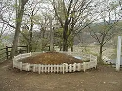- Christ's tomb. according to legend, the final resting place of Jesus Christ. This legend is engraved on a large stone plaque at the burial site. The story states that during Jesus' young life, that period of time where not much is written about him in the Bible, Jesus was living in Japan and learning Shinto philosophies that he mixed in with Judaism. Then, when Jesus was going to be crucified, his identical twin brother Isukiri snuck in and "casually took his place on the cross."(sic) Then Jesus travelled back to Japan through Siberia and Alaska. In Japan, Jesus raised a family, lived to the age of 106 and was buried in Shingo village. His brother's body was also transported to Japan and buried there. Jesus' and Isukiri's tombs are both marked by a cross. Christ's descendant still lives in Shingo town. At the tomb they have a small museum and a meditation path with some fountains.