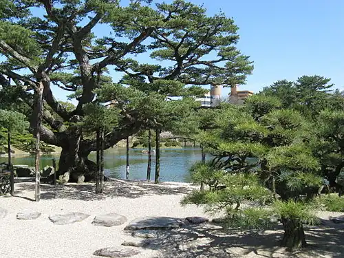 - 🌍 Ritsurin Park (栗林公園 ritsurin kōen), 1-20-16 Ritsurin-cho (5-min walk from Ritsurin Kōen Station (Kotoden), exit station and walk straight along the road. Also, a 3-min walk from Ritsurin Kōen Kitaguchi Station (JR) and also accessible by bus), ☏ +81 87 833-7411. Sunrise to sunset (varies by month). A beautiful and very large Japanese landscape garden built for the Sanuki and Sasuma lords and has been designated a Japanese National Treasure. It is full of intriguing items and spectacular views; it is likely to cause even those who have lived in Japan long-term to have a "Wow, I'm really in Japan!" moment. Although it is not one of the official top three gardens of Japan, it is undoubtedly one of Japan's most impressive gardens, and it benefits from generally being less crowded than the top 3. Some of the garden's highlights include the Engetsu-kyō Bridge (偃月橋; primary symbol of the park), the Okedoi-no-Taki (桶樋滝) Waterfall, the 'Red Wall of Rocks', a lotus pond, a lot of Japanese pine trees including the turle+crane rock, and other impressive sights. The park also contains three tea houses, a restaurant, and a folk craft museum. You can experience tea ceremony lite at the tea houses for small additional fee. On the map you receive when you purchase your ticket (and on the website), you'll find several walking routes, including one specifically designed for handicap visitors. ¥400 (adults), ¥170 (children).
