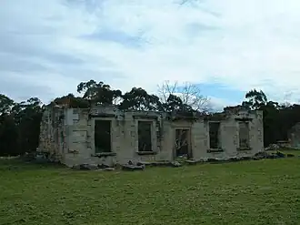 The independently operated coal mine in the northeast of the peninsula also worked with convicts from 1833 to 1848; a maximum of 570 convicts lived and worked there. From 1848 to 1877 the mine was operated privately, after that the coal deposits were exhausted, around 1900 all mining activities were stopped. In 1938, the remaining ruins were secured for a park, and the area has been listed as one of Australia's heritage sites since 2007 and also as one of the 11 "Australian Convict Sites" in 2010 as a Coal Mines Historic Site. Remains of the stone houses of the overseers (not the simple wooden houses of the prisoners, those have burned down), rails of the small coal railroad to the harbour in Little Norfolk Bay to the north, the Jetty in the harbour and some changes in the landscape can be visited, there are information boards. The area is much less frequented than Port Arthur and is accessible free of charge. Address: Saltwater River, at the end of Cole Mine Road.