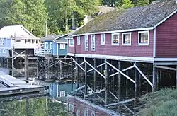 - 🌍 Telegraph Cove Resort, ☏ +1 250-928-3131, toll-free: +1-800-200-4665. Cabins and historic homes (2-8 people, some are wheelchair-accessible, pets welcome): off-season $115-200, in season $145-335. Dockside suites (with kitchens, some with deep freeze, no pets): off-season $130-155, in-season $270-225. Lodge (on top of the hill, overlooking the cove, no pets): off-season $185, in-season $220. Off-season is May to mid-Jun and Oct, in-season is mid-Jun to Sep.